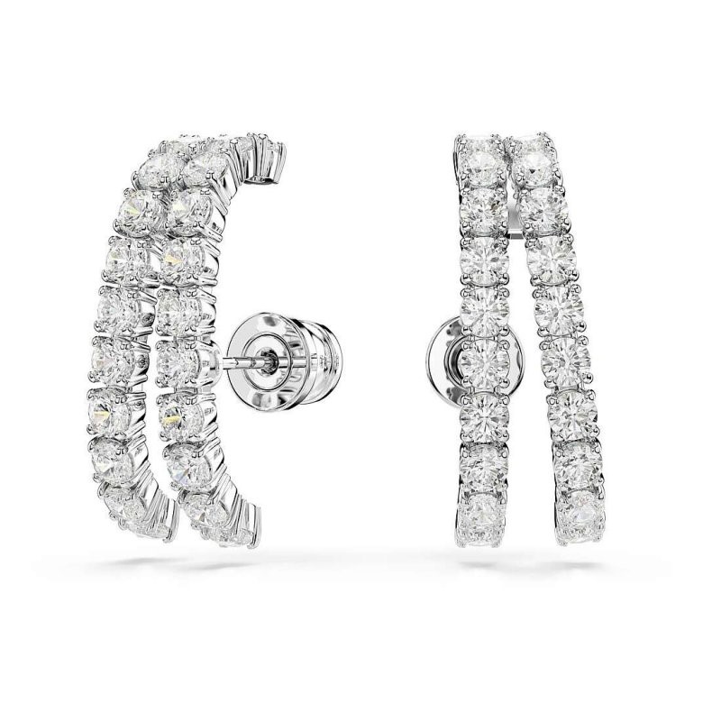 Orecchini a cerchio doppi Swarovski con cristalli bianchi in finitura rodiata